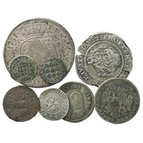 Monete e Medaglie di Zecche Italiane. Malta. Lotto di 8 monete: 6 d'argento e 2 di rame. R. AG e AE.