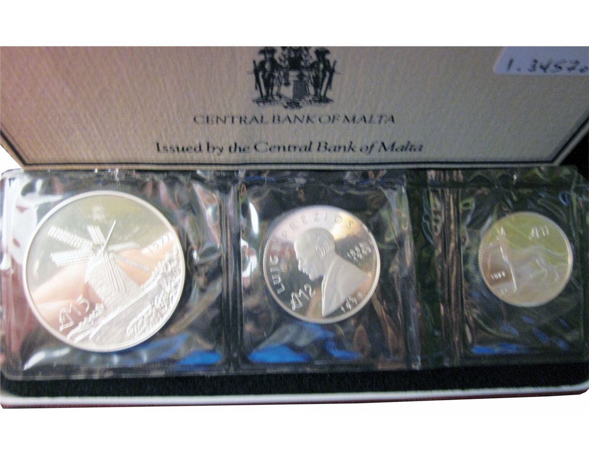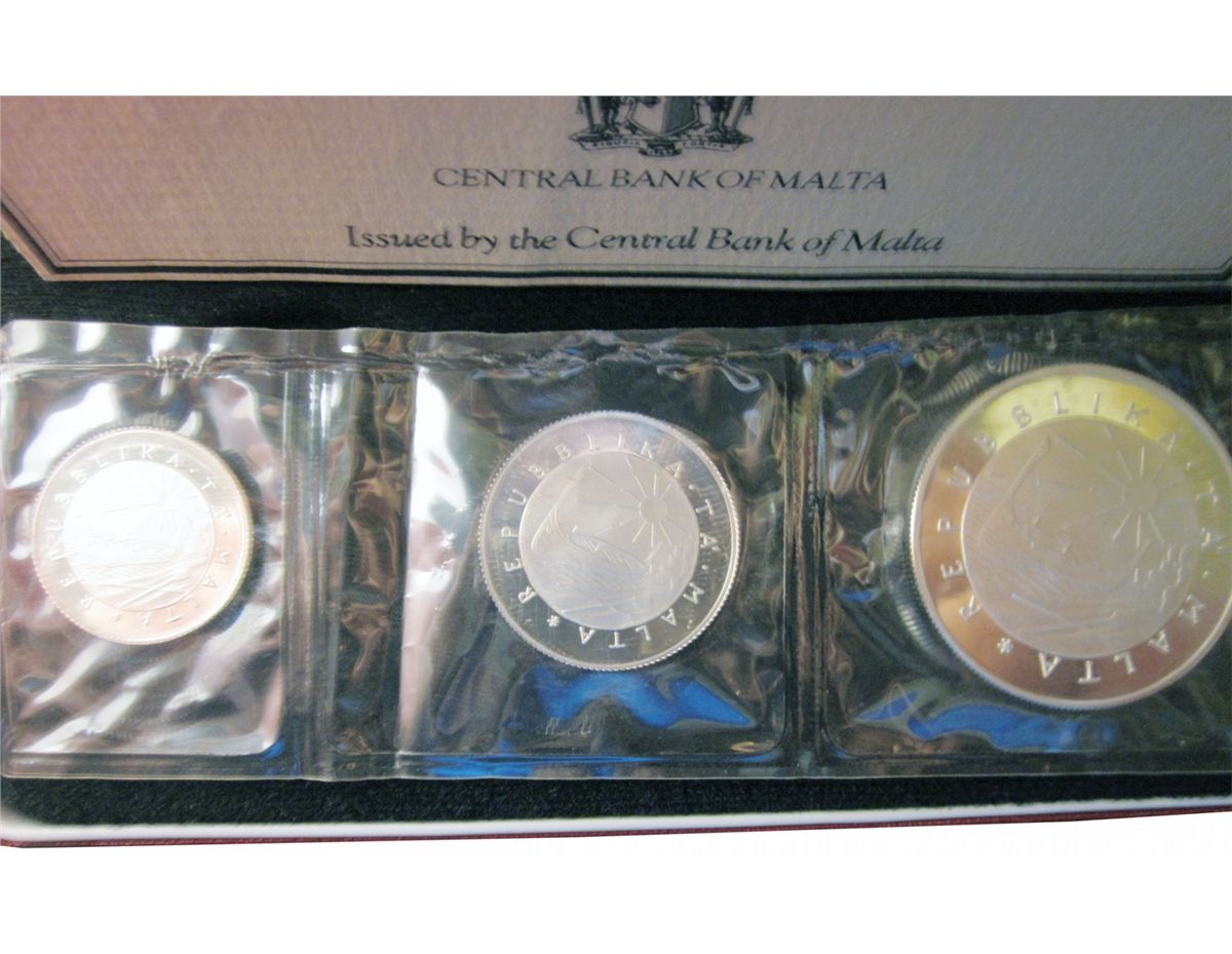 Malta; Proof Set 1977 KM # PS5 ( KM# 45, 46 & 47 With Case of origin and COA.