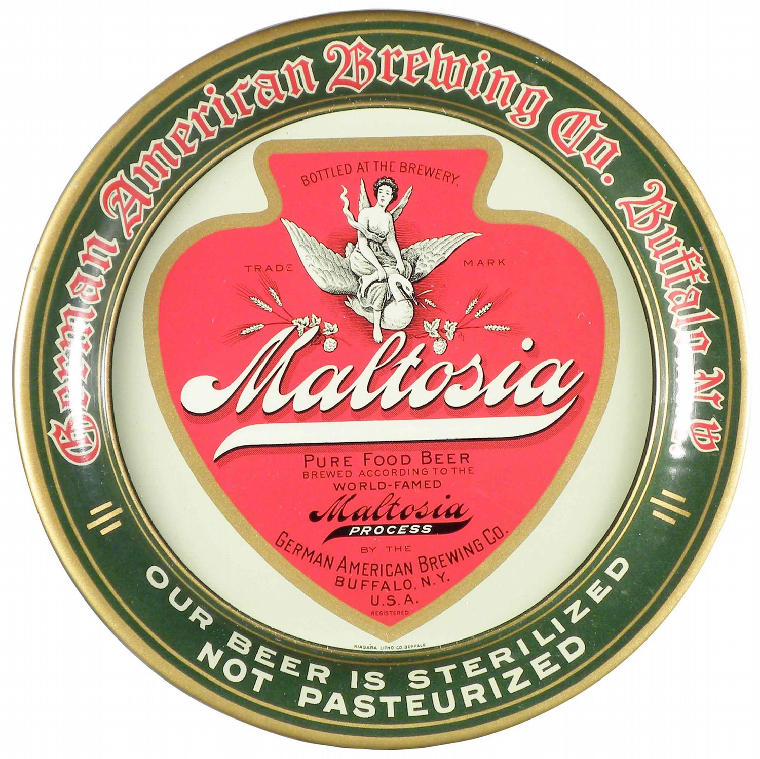Maltosia Pure Beer Food Tin Tip Tray. German American Brewing Co. Buffalo, NY. Near mint condition. 5 1/8 inch diameter.