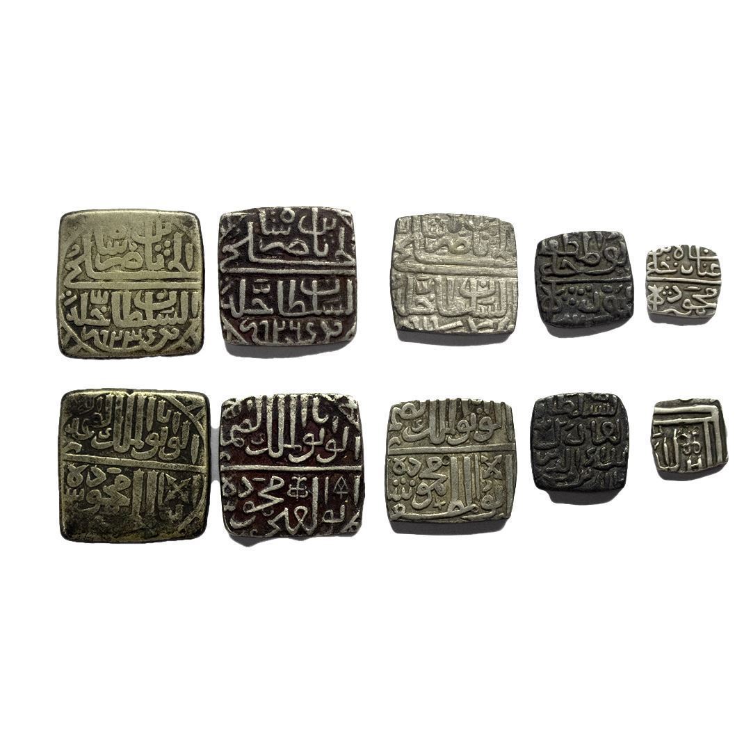Malwa Sultanate, Total set of 5 coins, Mahmud Shah II (AH 916-937 / 1510-1531 AD), Silver Tanka and