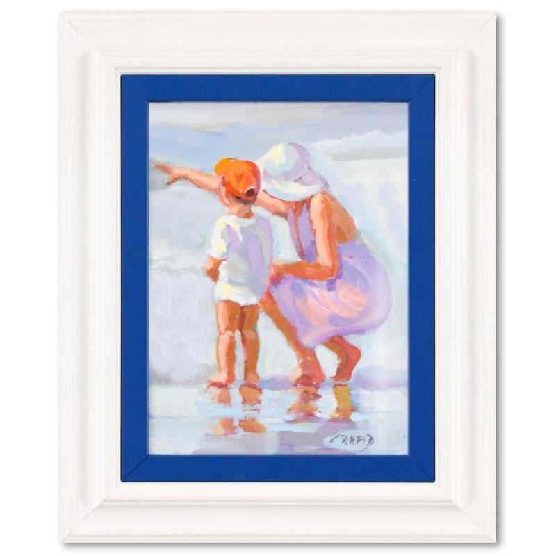 "Mama and Me" is an original acrylic painting on board by Lucelle Raad, hand signed by the artist. Includes Letter of Authenticity. Measures approx. 11" x 13" (frame), 5.5" x 7.5" (image).