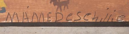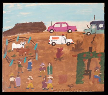 Signed original watercolor on box cardboard depicting Navajo life by this late-in-life starting Navajo artist. 22" x 22"