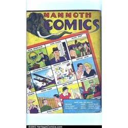 Mammoth Comics #1 (Whitman Publishing Co., 1938) Condition: VG. This 84-page oversized black and white comic book was published in 1938 and is extremely scarce. The book rates an 8 on the Photo-Journal's Scarcity Index, meaning that fewer than 20 copies are estimated to exist. When copies of this book do surface, they usually suffer from poor page quality; this is a solid VG with off-white to white pages! There is some slight foxing, a few small tears, and the centerfold is detached. This book features Dan Dunn, Alley Oop, Smilin' Jack, Moon Mullins, Tailspin Tommy, Terry and the Pirates, Don Winslow, Smokey Stover and more. Because of its size, this book can't be graded by CGC at this time. Overstreet 2002 GD 2.0 value = $200; FN 6.0 value = $600. Important notice: We expect to be auctioning lots at the rate of 200-250 per hour. Sometimes eBay Premier live bid software cannot keep up with that pace, so we strongly recommend that you place a realistic proxy bid now as insurance to avoid disappointment. Also please note that all Heritage/CAA lots purchased through eBay Premier carry a 20% Buyer's Premium.