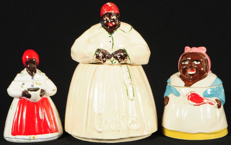 Figural Black Americana Cookie Jars and Pitcher, Largest Measures 11" Tall