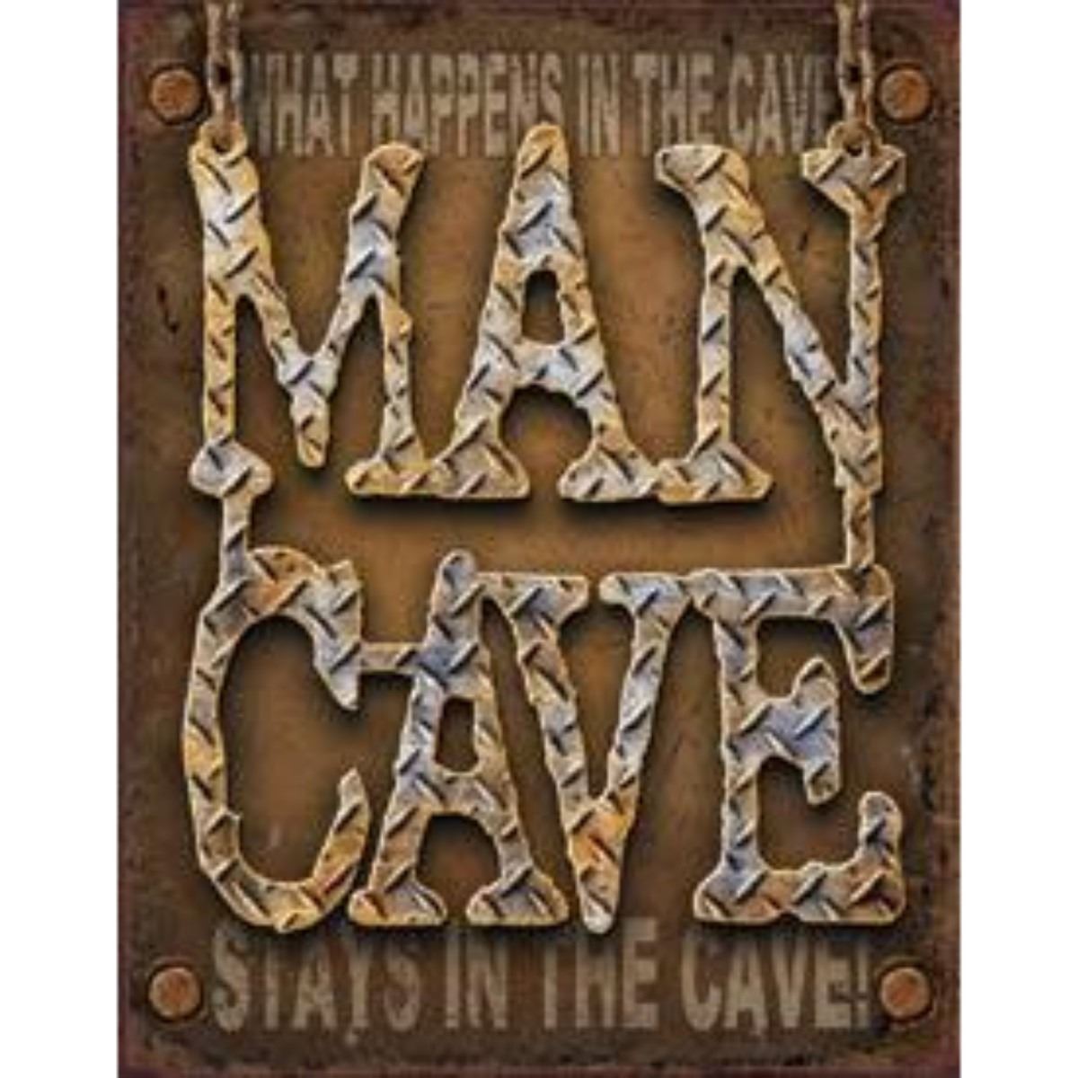 Decorative metal Man Cave sign. Pre-drilled holes for mounting. 12 1/2" W X 16"H.- Vintage style decorative tin sign