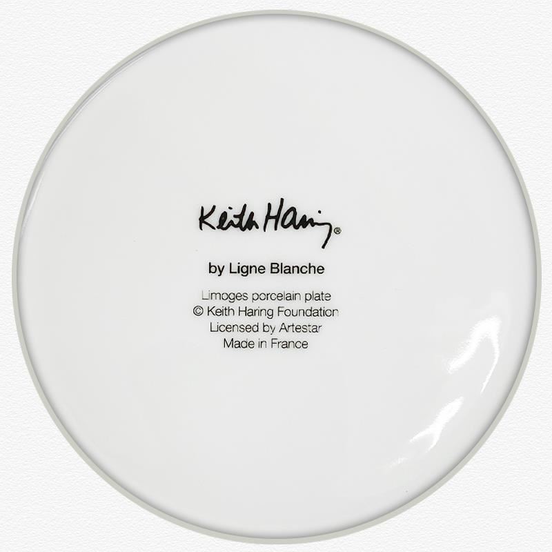 "Man-Dog" is a Limoges porcelain plate bearing the plate signature inverso of Keith Haring (1958-1990). This plate is custom framed and floated on linen. Measures approx. 13.5" x 13.5" (frame) 8.5" (plate diameter).