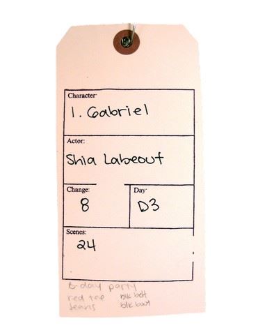 Gabriel Drummer (Shia LaBeouf) screen worn, hero, red short sleeve crew neck with Jacksonville logo on the front 'Gildan' t-shirt, (size M) and medium wash denim straight leg 'Levi' jeans. (size 32 x 32) Includes wardrobe tag.