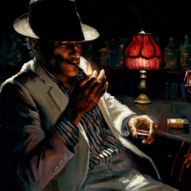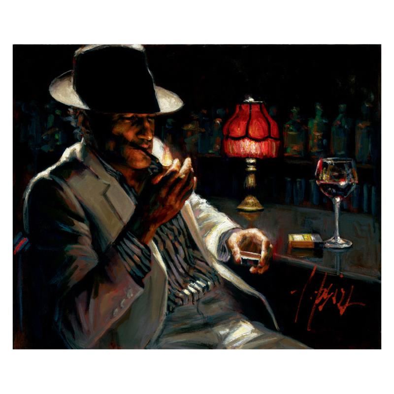 "Man Lighting Cigarette V" is a hand embellished limited edition giclee on stretched canvas by Fabian Perez. The piece is numbered and hand signed by the artist and comes with a Certificate of Authenticity. Measures approx. 25" x 30" (image). Please allow 5 additional business for items that include canvas stretch or framing.