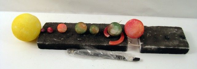 An interesting prop production made for "Man of Steel" (2013). This was going to be used in young Clark Kent's science project in the classroom. The director had the prop department make several different projects. They went with a "volcano" project instead. However the iconic high school science project solar system was placed in the classroom, but not screen seen. A wonderful piece of Americana!
