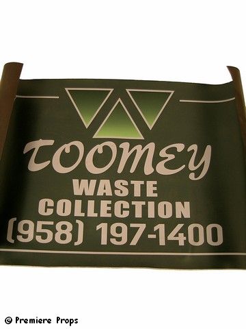 A sign from the new "Superman: Man of Steel" (2013). This says: "Toomey Waste Collection" with a fake Smallville phone number underneath. Magnetic (approx. 36" x 21"). Includes letter of provenance.
