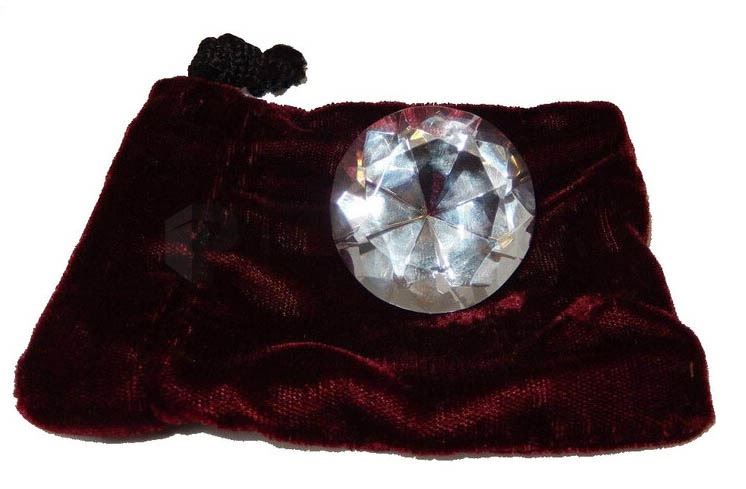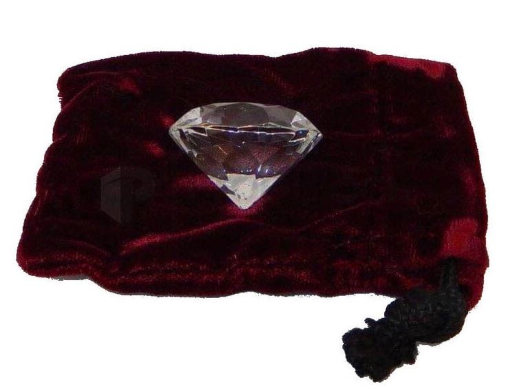 Large Monarch Diamond used in the production of the 2012 crime thriller Man on a Ledge. As a police psychologist works to talk down an ex-con who is threatening to jump from a Manhattan hotel rooftop, the biggest diamond heist ever committed is in motion. This is a large faux diamond made of acrylic and was used throughout the film. This piece is accompanied by a red satin drawstring bag and remains in excellent, production used condition.