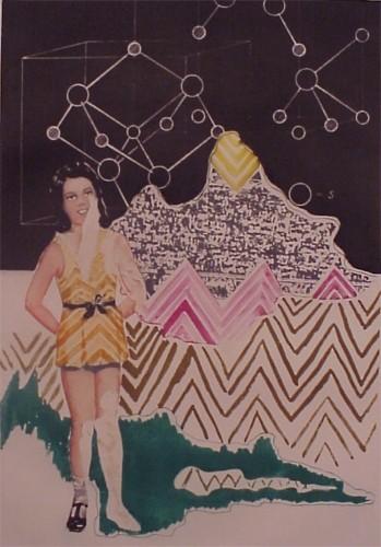 Man Ray (1890-1976) American HOMAGE A LINUS PAULIN, GIRL AT EXHIBITION, color etching, signed in pencil, from the numbered edition 120, image 20 x 13 1/2", full margins, tiny tear center left margin edge.