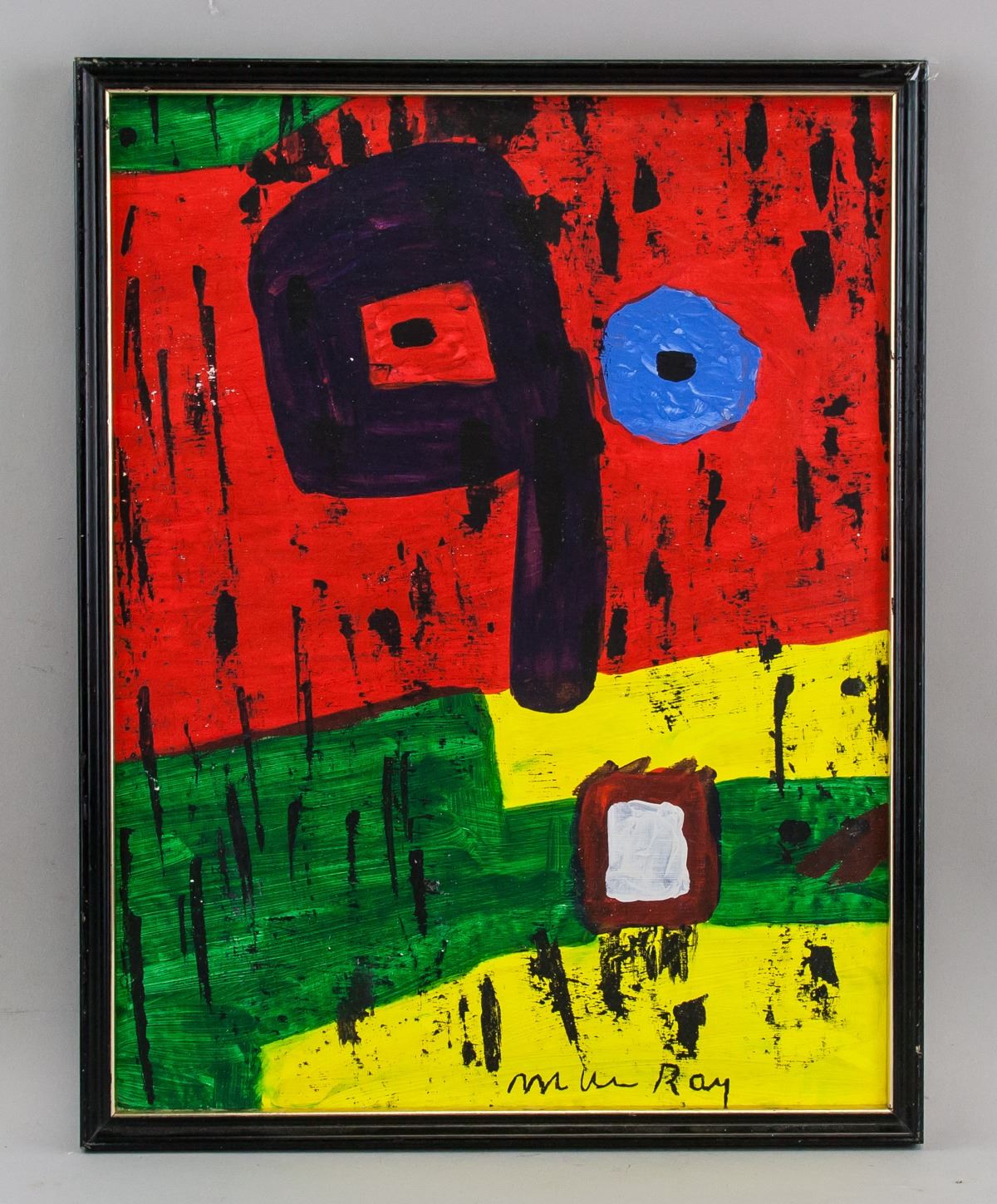 Oil on canvas, framed. Featuring a composition. Signed Man Ray near lower margin. Attributed to Man Ray (1890-1976, American). 44 x 33 cm (17.3 x 13.0 inches). Framed size: 46 x 36 cm (18.1 x 14.1 inches). PROVENANCE: Southern Ontario estate