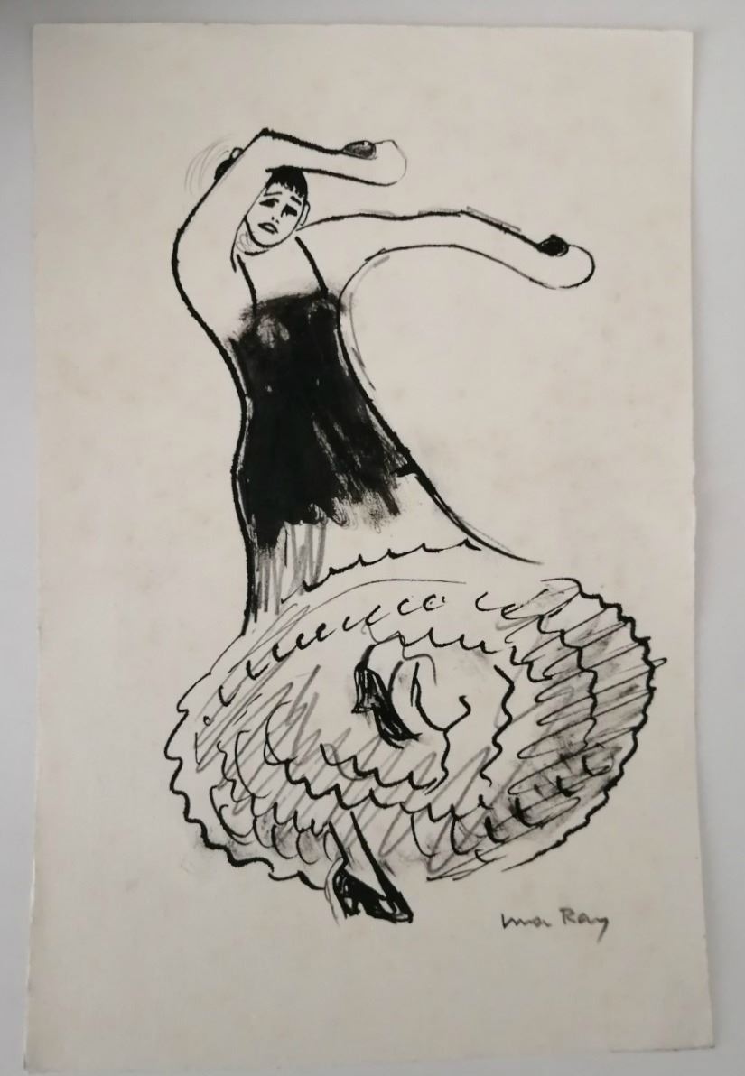 Man Ray was an American visual artist who spent most of his career in Paris. He was a significant contributor to the Dada and Surrealist movements, although his ties to each were informal. A drawing by Man Ray, signed. Size of image: 10.5x6 inches. Mounted and framed and Supplied with coa.