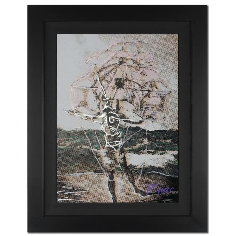 "Man Ship" is a one-of-a-kind hand-pulled silkscreen and mixed media painting on canvas by Ringo (Daniel Funes) - protege of Andy Warhol's apprentice, Steve Kaufman! This piece is hand signed by the artist and Includes Certificate of Authenticity! Measures approx. 16" x 20" (with frame); 11" x 16" (image).