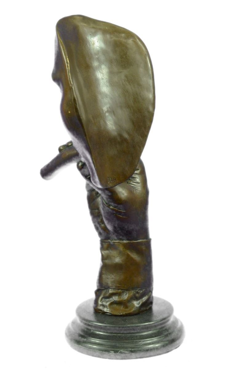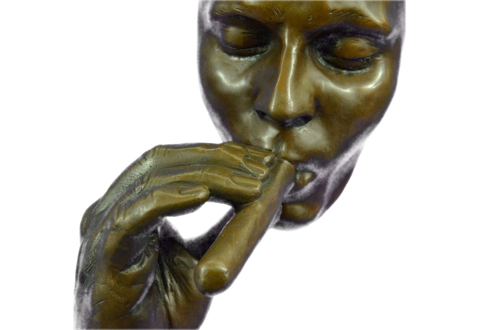 Man Smoking Cigar Bronze Sculpture on Marble Base Figurine