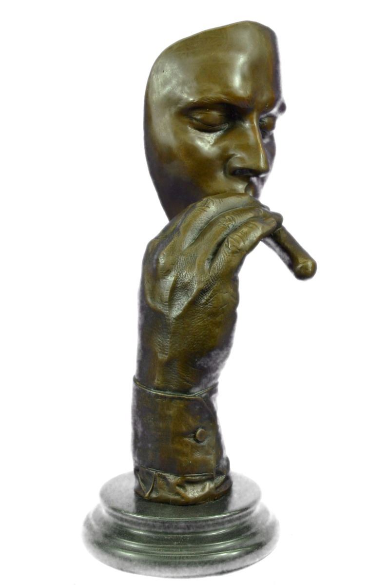 Havana Man Smoking Cigar" Sculpture-The Sculpture Has A Unbelievable Detail, It Captures Each Detail From The Veins On The Hand To The Precision Of The Hand Rolled Cigar. Uniquely Made From Real Bronze On A Black Presentation Base. The Piece Is Signed "Dali". The Man Seems To Float In The Air With A Serene Ease About Him. Bronze Dimensions With Marble Base: Height 15 X Width 8 inches. Weight: 13 Lbs.