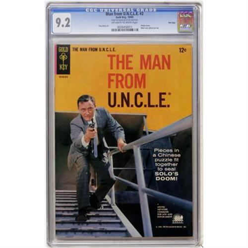 <B>Man from U.N.C.L.E. #2 File Copy (Gold Key, 1965) CGC NM- 9.2 Off-white to white pages.</B></I> Photo cover. Back cover photo pin-up. Don Heck art. CGC notes, "From the Random House Archives." Overstreet 2007 NM- 9.2 value = $125. CGC census 10/07: 5 in 9.2, 8 higher.<BR><BR><b>Shipping:</b> Comics - Slabbed (certified) (<a target="_blank" href="http://www.heritageauctions.com/common/shipping.php">view shipping information</a>)
