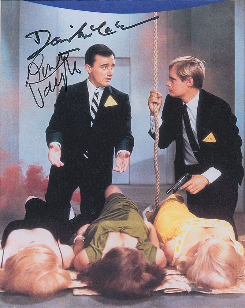 Comical color satin-finish 8 x 10 photo from the show, signed in black felt tip by Robert Vaughn and David McCallum. In fine condition.