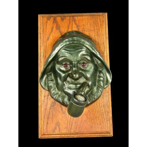 Man of the Sea Tin Electric Cigar Lighter mounted on wood. Eyes light up when plugged in. Excellent original condition. Image is 7 x 7 1/2 inches.
