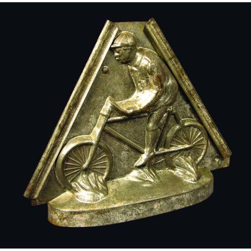 Man on Bicycle Tin Chocolate Mold. Excellent Condition. 11 1/2 X 9 1/4 inches.