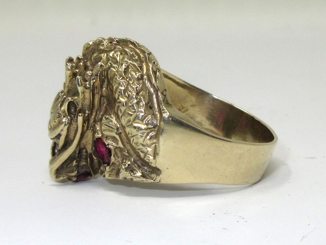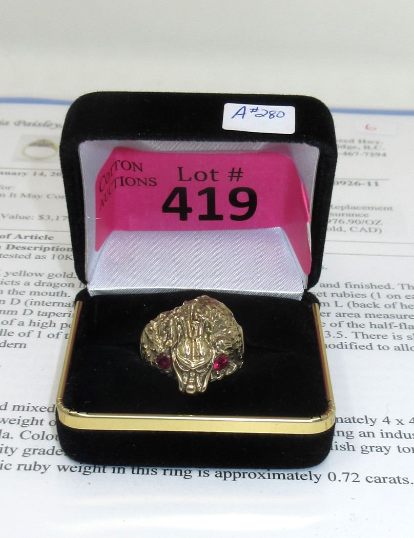 3 Round rubies - 0.72 CTW. Ring weighs 10.4 Grams. Includes $3170 Appraisal.
