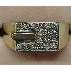 Man's 14K gold and diamond ring, buckle motif ring with eighteen approximately 2 point diamonds, .36 TCW, 7.8 dwt.