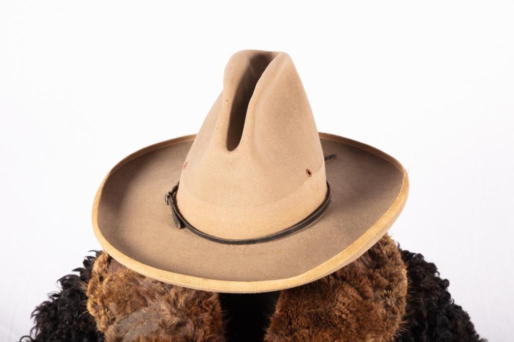 Stetson hat is 7 1/8", marked with Sears and Roebuck & Co. inside the sweatband.