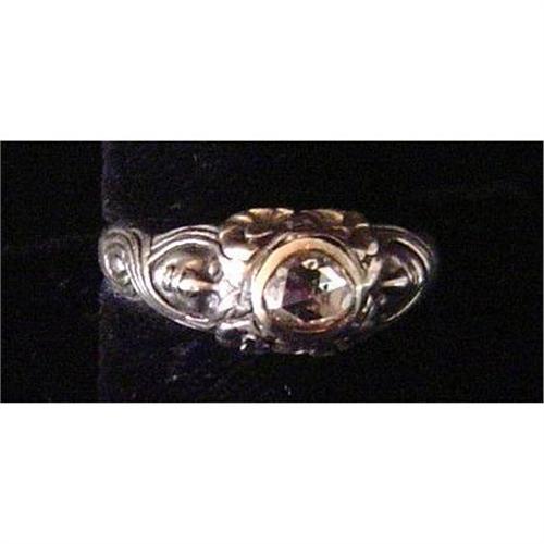 <table width="100%" border="0" cellspacing="0" cellpadding="4"><tr><td><em> </em></td></tr><tr> <td width="100%"> Circa. 1890 Art-Nouveau ring with rose diamond. Diamond tested with a diamond tester. Total weight .85 carats. Open-backed. Size 10.25. Silver mount. Wonderful design. Rare and extraordinary. Can be sized by a jeweler </td></tr><tr> <td> </td></tr><tr> <td>Reference #: BAJR331</td></tr><tr><td>Condition:Excellent</td></tr><tr><td>Year:1890</td></tr><tr><td>Country:USA</td></tr><tr><td>Title:Man's Rose Diamond Ring</td></tr><tr><td>Style:Art Nouveau</td></tr><tr><td>Type:Ring</td></tr><tr><td>Location:New York USA</td></tr></table>