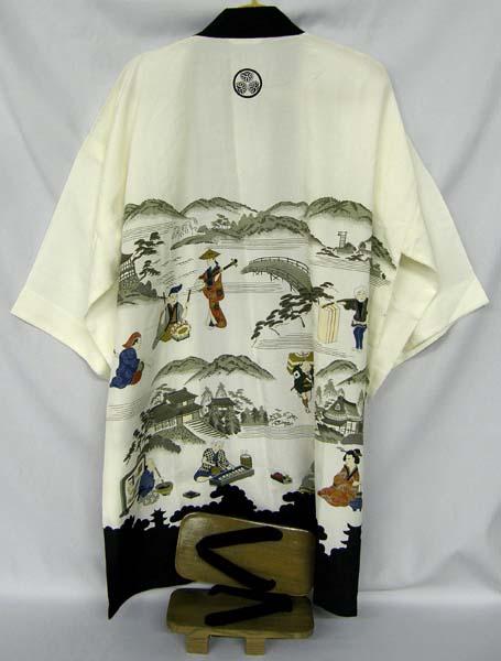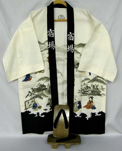 Man's Silk Jacket and Getas. Jacket measures approx. 27'' shoulder to shoulder and 35.5'' shoulder to hem, getas measure 9''Lx4.25''W. Buyers Pay Actual Shipping and Handling Charges(see terms and conditions for more information).