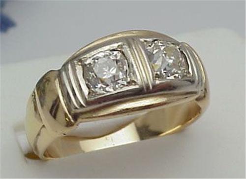 Man's diamond ring with two mine cut diamonds approx 1.50Ctw Clarity SI 2 Color H 14kt yellow gold 8.4gr size 11.5