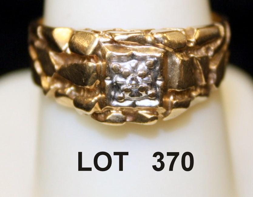 Man’s nugget style 10kt gold ring with small diamond. Est: $100 - $200