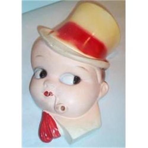 This fantastic and quite colorful Chalkware String Holder is in SUPERIOR condition with no chips, cracks, or dings. It measures 5" wide and is 9" long and has a metal holder on the back for hanging.