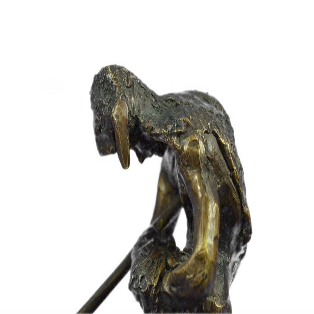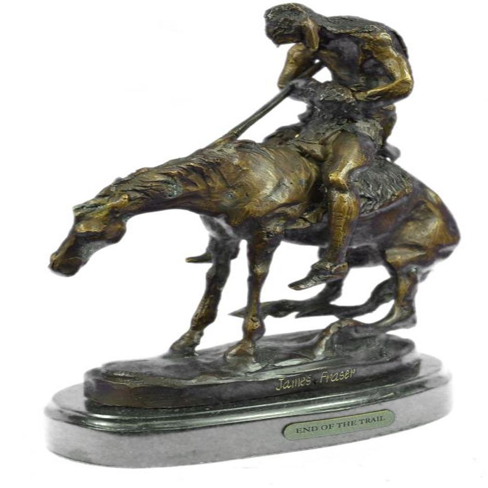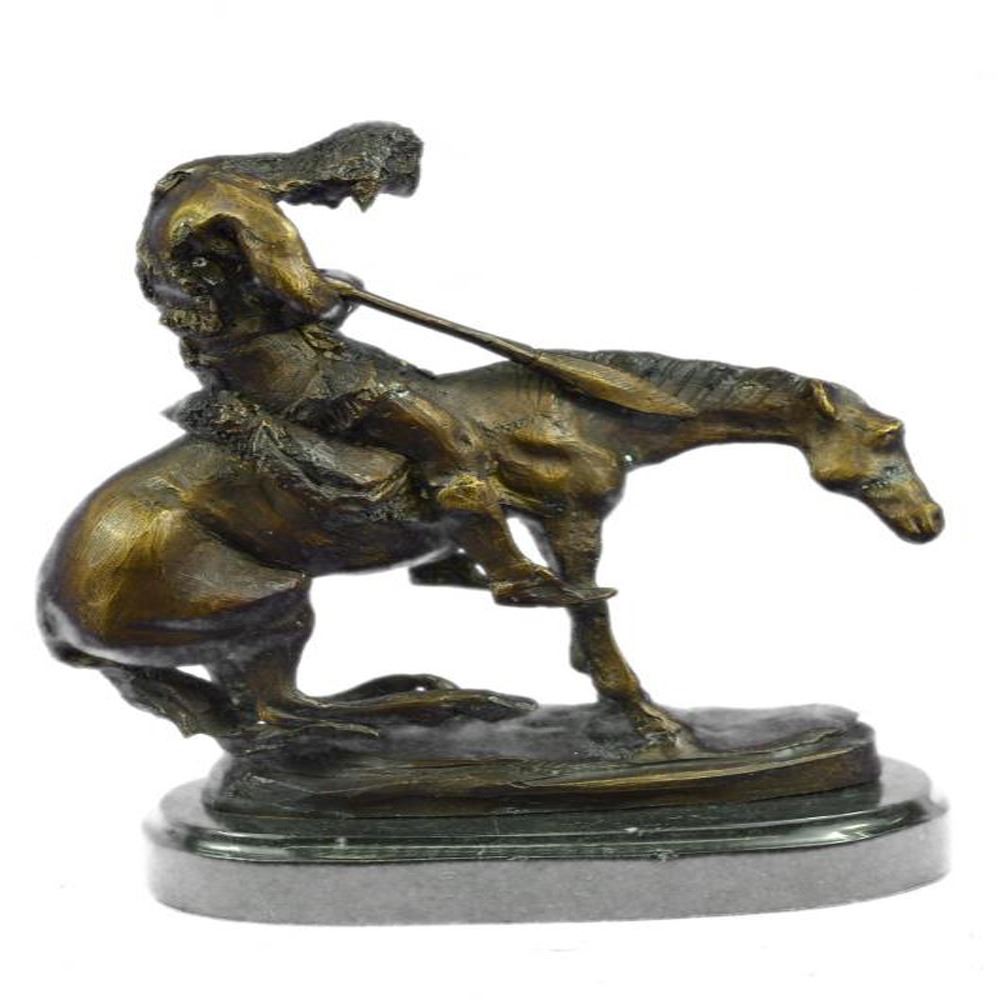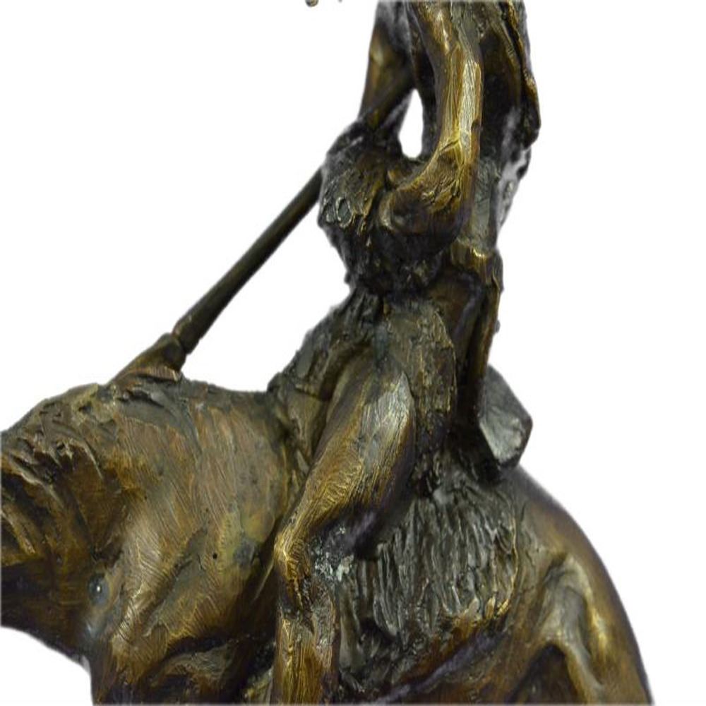 This Sculpture features a man and his horse. He has his head completely down and it appears to be that he has fallen asleep. Now, this is often the stage for horse riders, because they are usually on point when it comes to being a lookout. He has his left hand in his pocket. The stallion he rides is beyond belief beautiful and really strong, he slowly rides his owner to sleep. The handmade Bronze Sculpture was cast using the early method of lost wax casting and stained with a brown patina finish for conservation and is mounted upon a marble base. Dimensions: Height 10 X Width 9 inches. Weight: 7 LBS.