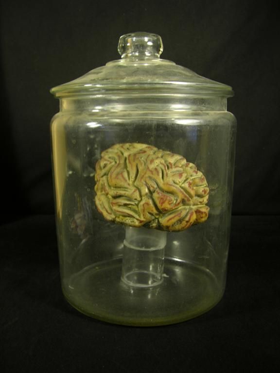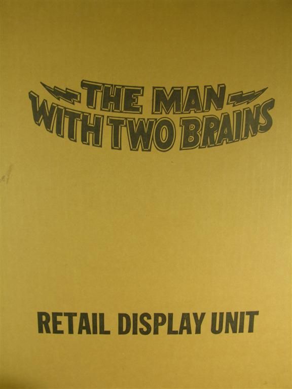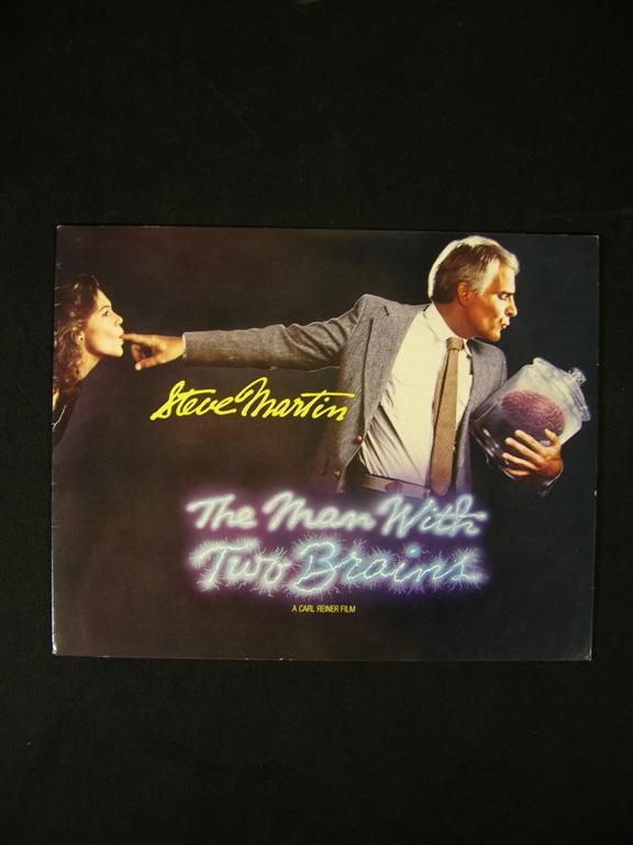 This is a unique display for Steve Martin's spoof of mad doctor films, The Man With Two Brains (1983), featuring one of the prop brains, perfectly displayed in a glass jar and a crazy close up of the comedian and the film's title on a pop-out insert. A press kit booklet with several stills from the film arranged in full color also accompanies this lot. The film found Martin attempting to find a new home for his wife's disembodied but still talkative gray matter. Oversized item. Additional postage required.