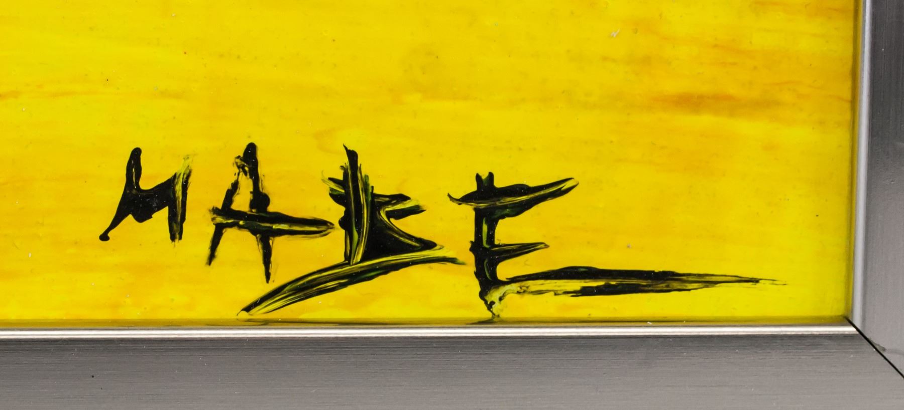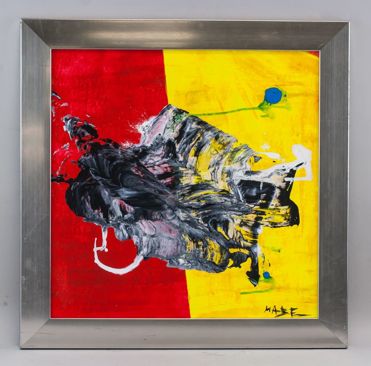 Oil on canvas, framed. Featuring an abstract expressionist composition. Signed MABE on the lower right corner. Attributed to Manabu Mabe (1924-1997, Japanese-Brazilian). 44 x 44 cm (17.5 x 17.5 inches). Framed size: 55 x 55 cm (21.5 x 21.5 inches). Provenance: This lot carries limited provenance from a Southern Ontario estate