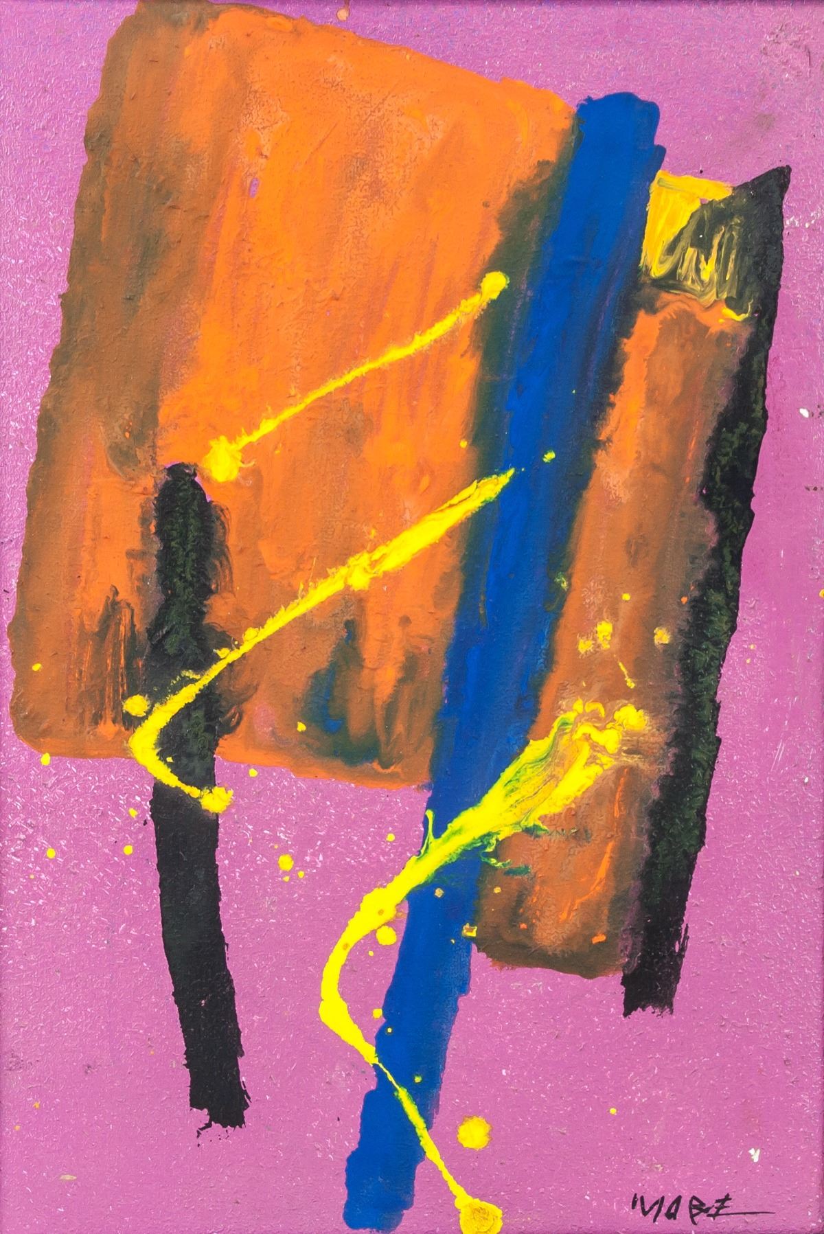Oil on canvas, framed. Featuring an abstract expressionist composition. Signed Mabe on the lower right corner. Attributed to Manabu Mabe (1924-1997, Japanese-Brazilian). 31 x 21 cm (11.25 x 8.25 in) Frame: 35.3 x 25.2 cm (13.75 x 9.8 in). PROVENANCE: Southern Ontario estate