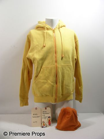 Management - Mike's (Steve Zahn) screen worn bright yellow cotton "VOS" long sleeve zip up hoodie (size M), and orange wool cap. Includes wardrobe tags!