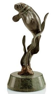 Manatee Bronze Sculpture - 8"H 4"W4 "D - Great Attention To Detail - Beautiful Finish - Lost Wax Cast