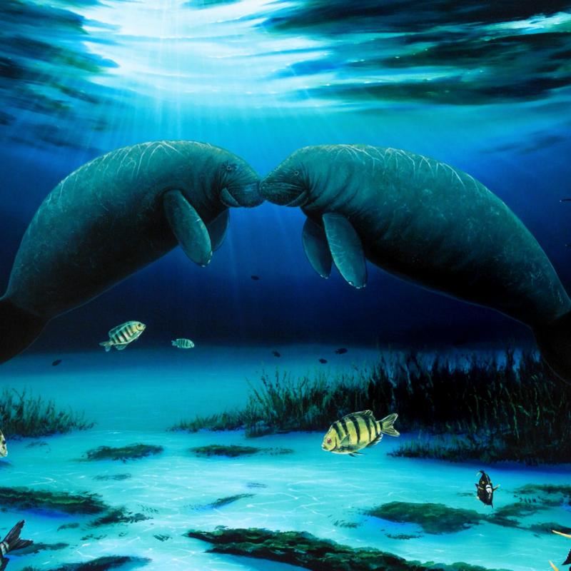 "Manatee Encounter" is a poster by Wyland. Measures approx. 24" x 19" (image).