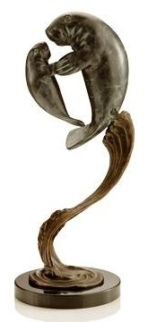 Manatee Mother & Child Bronze Sculpture 14.5"H 6.5"W 5.5 "D - Great Attention To Detail - Beautiful Finish - Lost Wax Cast