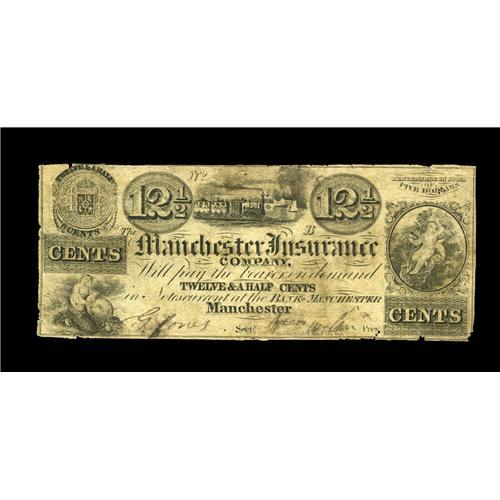 <B>Manchester, MS- Manchester Insurance Co.</B></I> 12 1/2¢ Leggett 1<BR>Scarce, but likely a falsely filled in remainder. <B>Very Good+.</B></I>