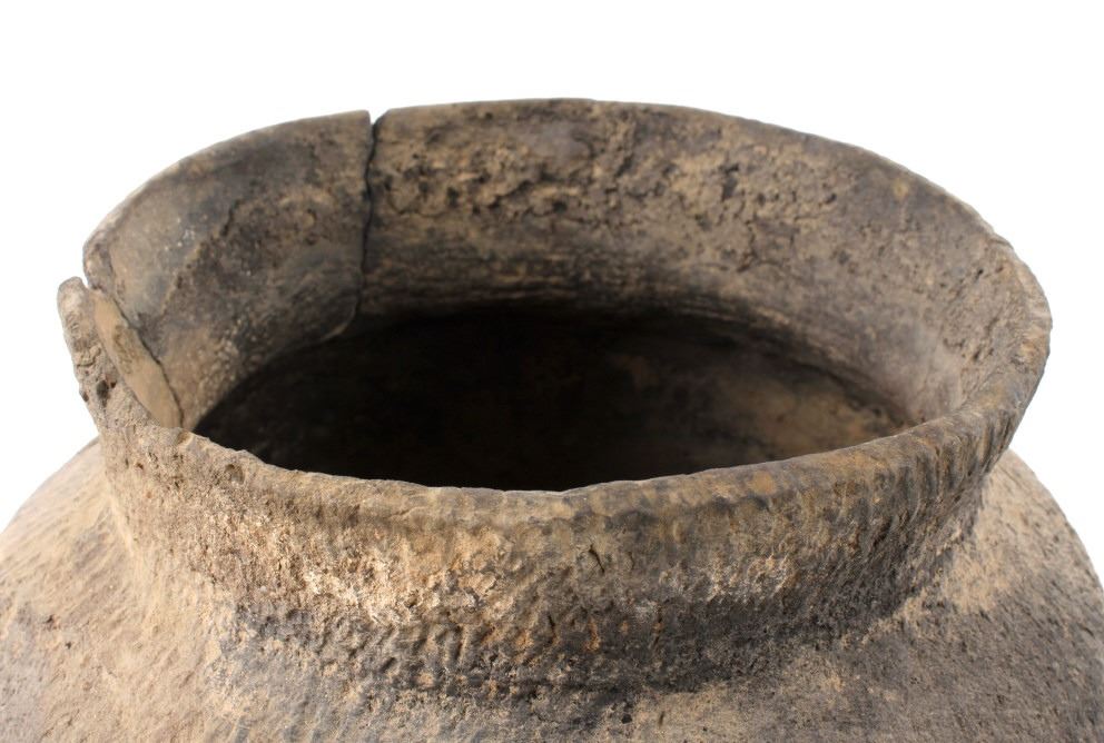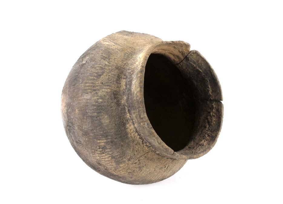 This is a scarcely seen authentic prehistoric pottery vessel from the Initial Middle Missouri Native American Indian peoples dating to A.D. 900-1300. The piece comes with a June 1984 signed letter from Ann M. Johnson, Ph.D. Archeologist for the United States Department of Interior National Park Service. The letter is addressed to a Mrs. Robert A. Runge of Hardin, Montana and states that after examining this piece Johnson found the piece to be a prehistoric A.D. 900-1300 example of the Initial Middle Missouri culture of the Missouri River related to the Mandan and Hidatsa tribes. She goes on to say that Mrs. Runge husband’s family found the vessel near Edgement, South Dakota with other Initial Middle Missouri pieces being documented to be recovered there as well. She calls this an Anderson High Rim type. This piece shows a rounded base with wide rolling body and slightly flaring outward straight tall rim all having a linear rolled pattern. The piece is complete with a slight crack and broken lip piece still present. Also with he vessel is a purple ribbon with gilt gold lettering repeatedly stating “Little Big Horn Bean Co.” likely an award given to the piece over time. Provenance: From a historic Eastern Montana American Indian Collection, where the piece was found to be an authentic original, one of the finest collections of American Indian weaponry and antiquities in Montana. Measures overall 9.5”T 10”W. This is an ancient piece of pottery with many small flaws, but in solid condition. Shipping will be handled by our company, but at the buyers risk.