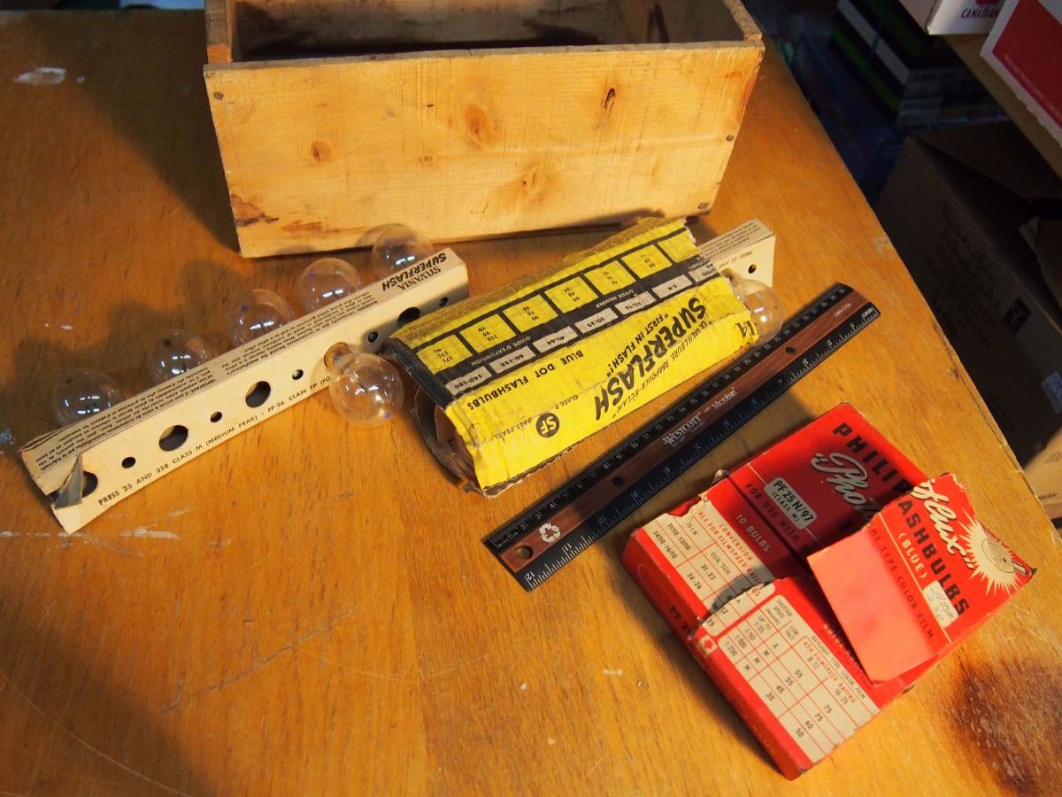 Mandarin Oranges Crate with Vintage Lightbulbs (Phillips, Photoflux, Silvania Superflash)