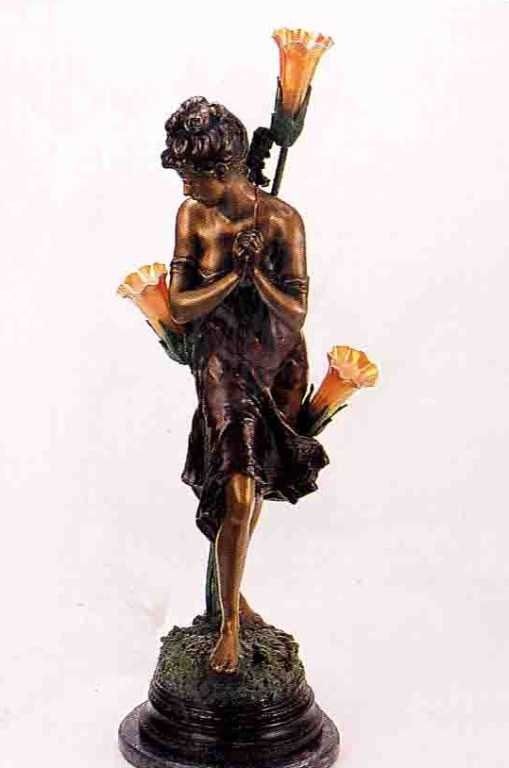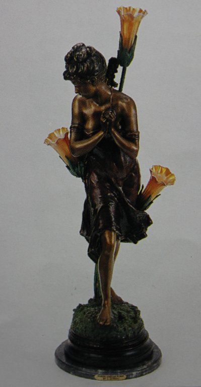 "Mandolin On Back" Bronze Sculpture Lamp - After A. Moreau - Beautiful Color Patina - Mounted On A Fine Italian Marble Base - Beautifully Detailed - Signed - Mint Condition - 27.5"H X 12"W - Lost Wax Cast Bronze