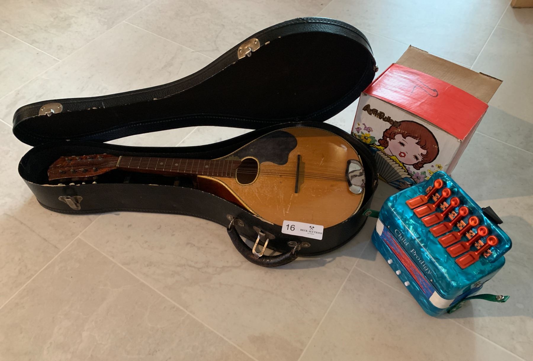 Mandolin (Unbranded) w/ Carrying Case & Children's Miniature Toy Accordion