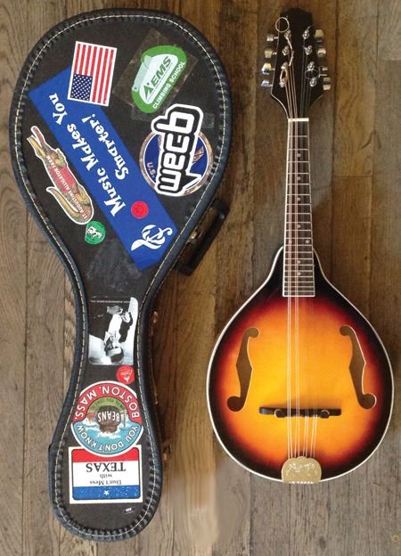 Ca. 1980s, 8-string mandolin with sunburst finish. Very clean, playable condition. With case. 25-1/2" x 10-1/2"