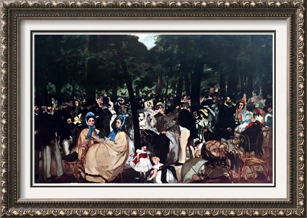 Artist Name: Manet | Title of Art: (Plate Two) Peintures La Musique Aux Tuileres c.1860 | Medium: Fine Art Print from Museum Artist | Unsigned & Unnumbered | Art Size: Approx 8 x 10 | Offered Unframed. Framing presentation if shown is for concept only. If you need assistance with custom framing, call the experts at ArtForSale | Circa: 1949