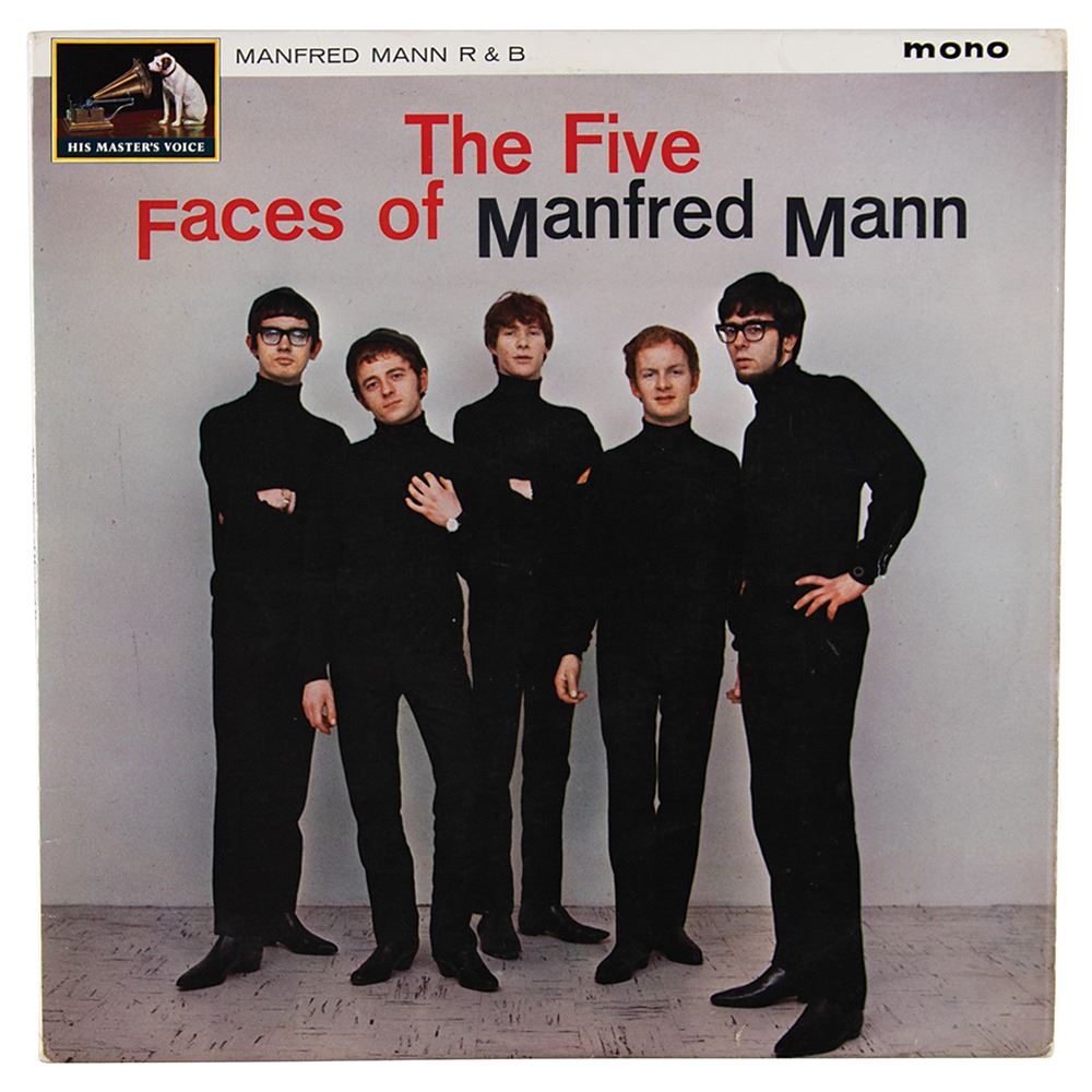 The Five Faces of Manfred Mann, signed on the back cover in ballpoint by Manfred Mann, Mike Hugg, Paul Jones, Mike Vickers, Tom McGuinness, and by their road manager. In fine condition. The record is included. Accompanied by a certificate of authenticity from Tracks.
