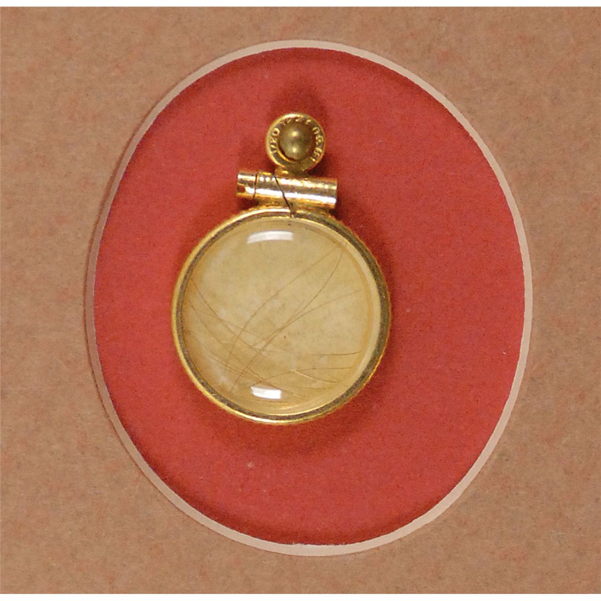 Exceptional display featuring two inch-long oval lockets, one containing a small swatch of fabric from the plane von Richthofen was flying at the time he was killed, and the other containing several short strands of his hair. Handsomely double-matted and framed together with three engraved plaques and two photos to an overall size of 14 x 21. In fine condition. Accompanied by photocopied provenance material from noted autograph dealer Charles Hamilton, including a letter stating that the fabric was “cut from the plane by Bill Barbour, Battery B, 51 Artillery, C. A. C., France, June 10th, 1918”; and a letter by Hamilton stating: “the crewcut hair attached herewith was removed by me from a locket…and is an original lock of hair of German World War I ace Baron Manfred von Richthofen presented by him to a cousin.” A scarce highly desirable pairing from the most notorious fighter pilot of all time.